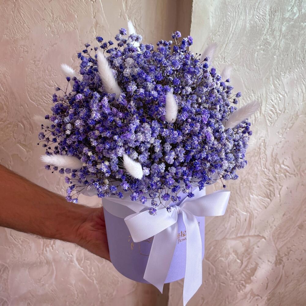 Композиция – визитная карточка Amsterdam Flowers. "Фиолетовый сон" понравится каждой девушке, нежнейшая сиреневая гипсофила и пушистые хвостики белого лагуруса не оставят равнодушной. Тем более такой букетик будет очень долго радовать поучительницу.