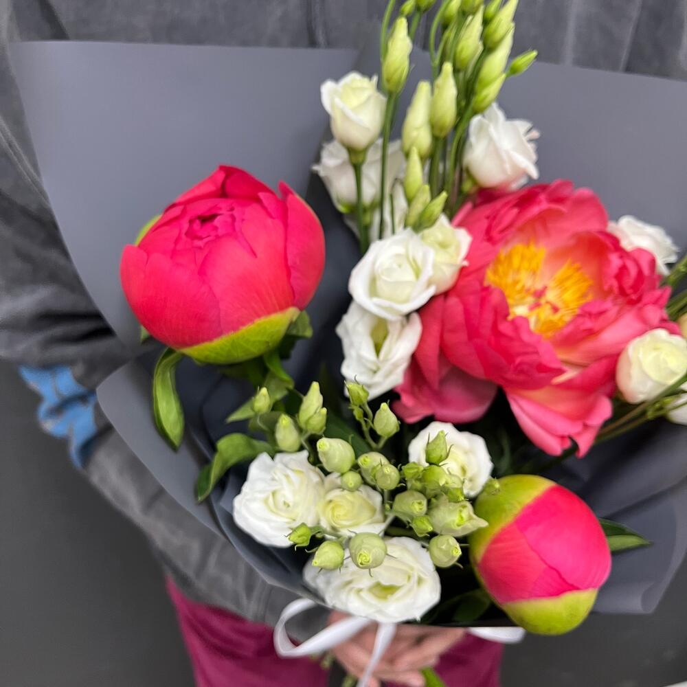 ВЕСНА В ПЕТЕРБУРГЕ премиум букет из пионов и эустомы в Дмитриеве