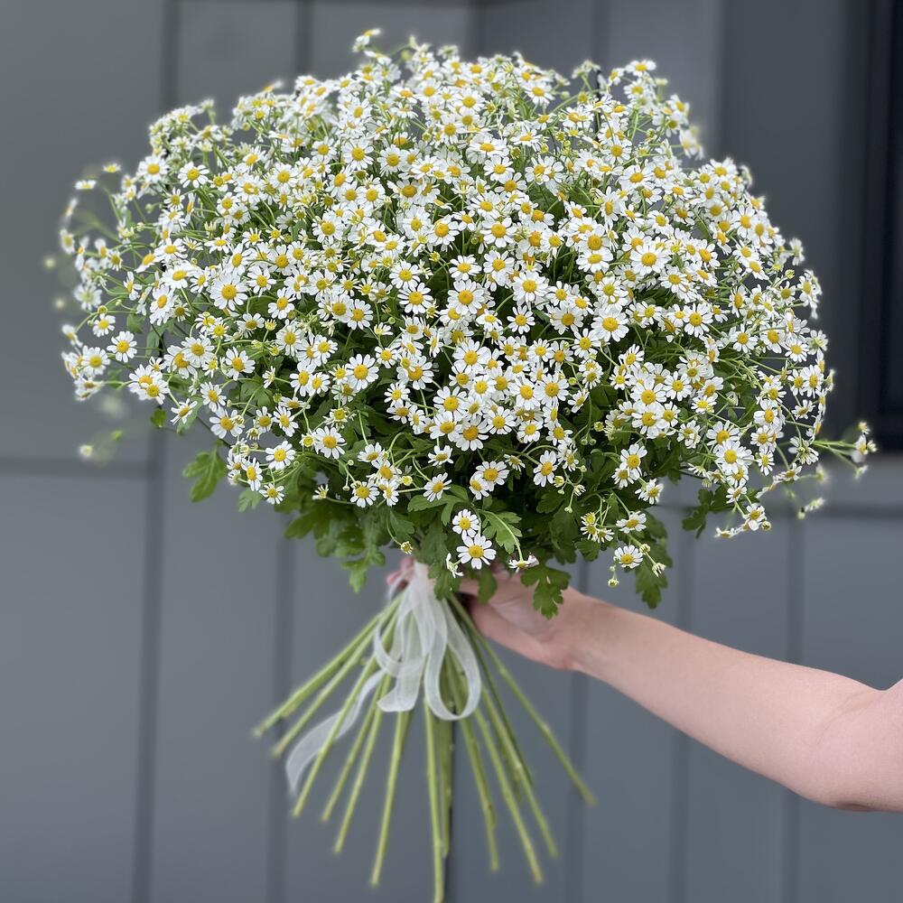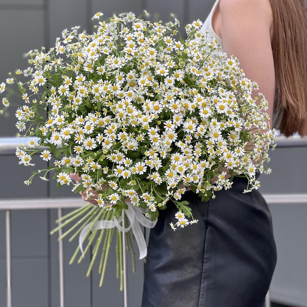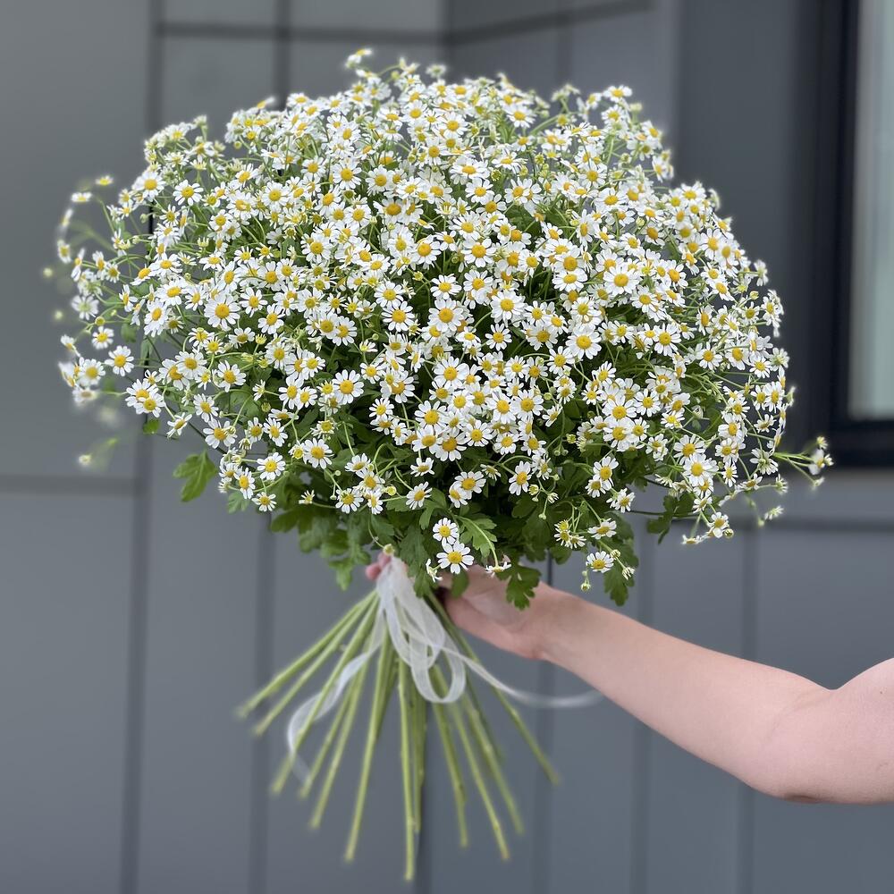Букет из 25 веток танацетума (полевой ромашки) оформленной лентой!