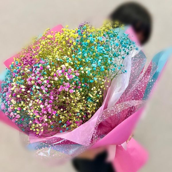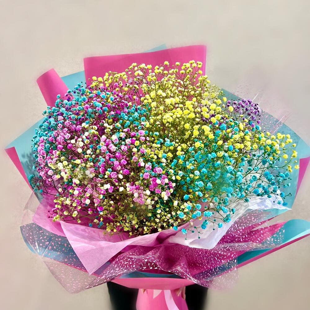 Огромный букет из радужной пушистой гипсофилы – порадует своим ароматом и стойкостью, подарит романтическое настроение и будет долго радовать взгляд ваших любимых, родных и близких 💕