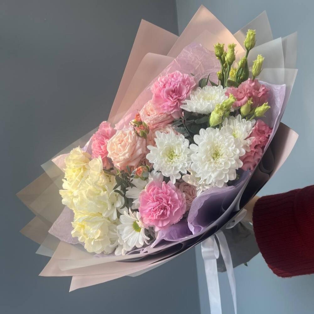 Букет с гортензией и кустовой пионовидной розой в Дмитриеве
