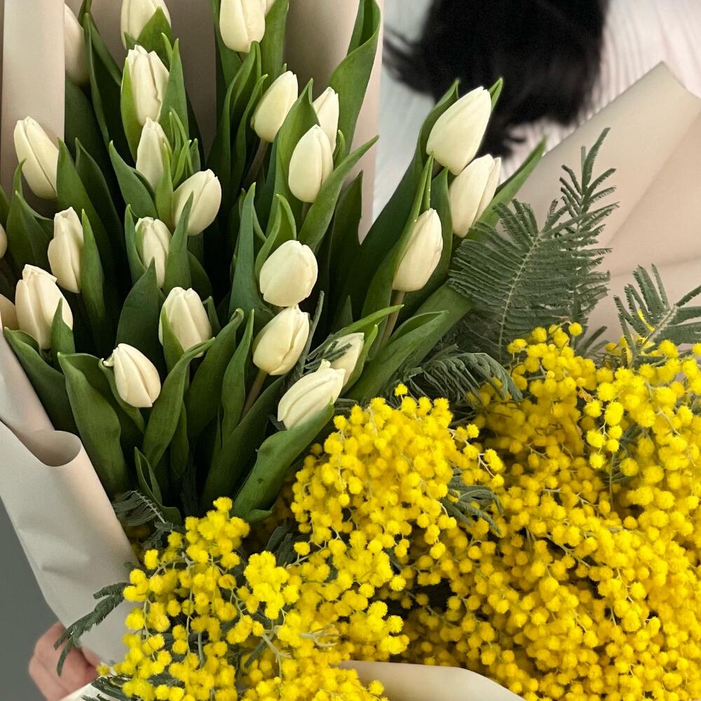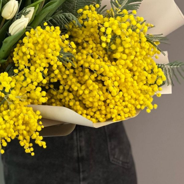 Весенний букет с тюльпанами и мимозой в Дмитриеве